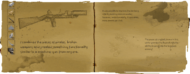 In "The Book", a mysterious manuscript that you have come into possession of, there are instructions for crafting powerful weapons belonging to another time. The full power of these weapons will be necessary to progress in this supernatural world of pirates.